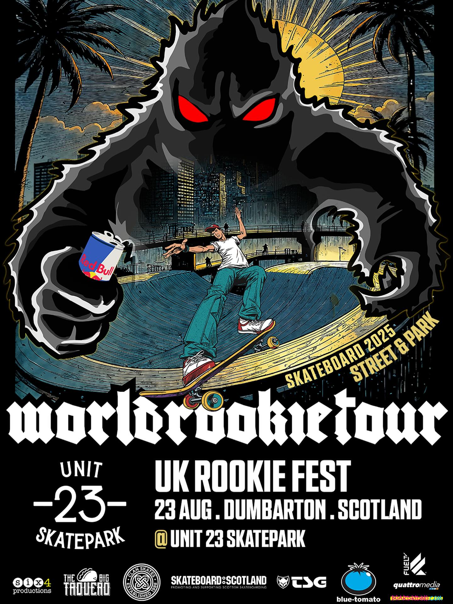 The UK Rookie Fest 2025 is happening on August 23 at Unit 23 Skatepark in Dumbarton, Scotland.